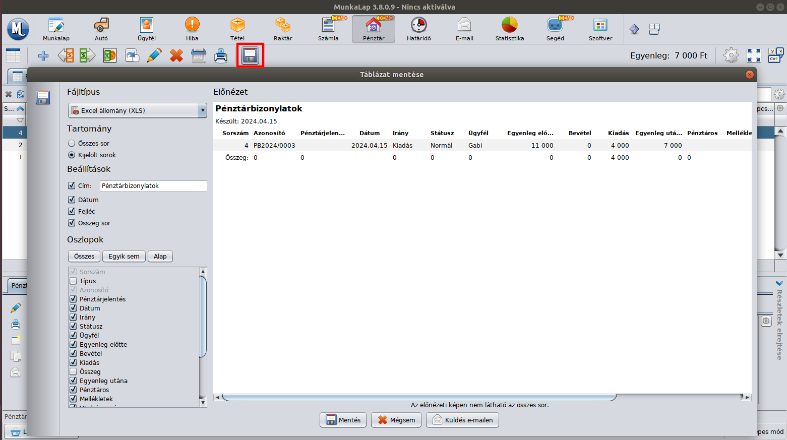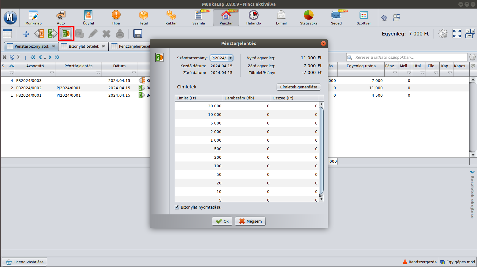 • Pénztárbizonylat, pénztárjelentés nyomtatása