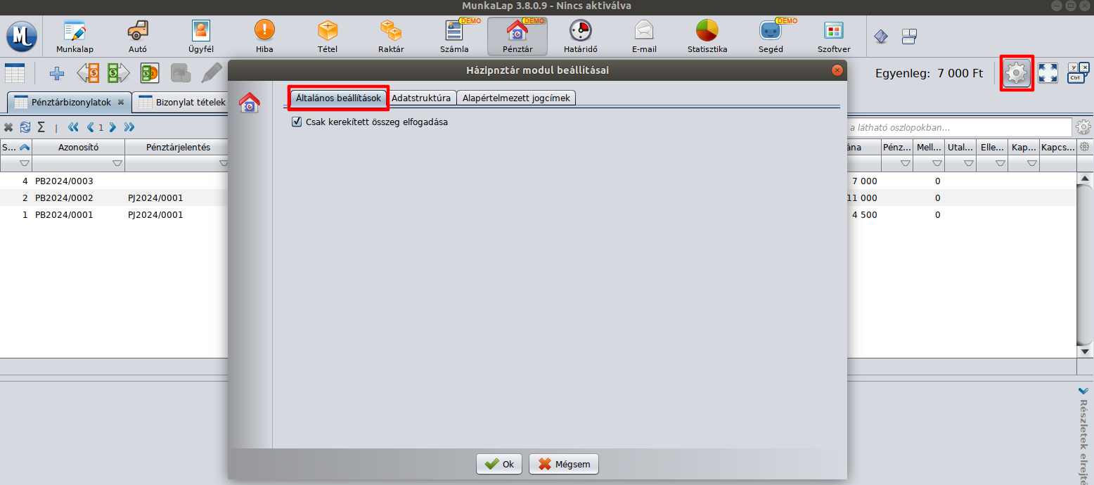 A szoftver alapértelmezetten csak kerekített összeget fogad el.