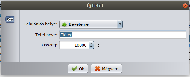 A tétel neve mellett az alapértelmezett összeget is be lehet állítani. Ha nem kíván ezzel a lehetőséggel élni, hagyja az Összeg mezőt 0 Ft-on.