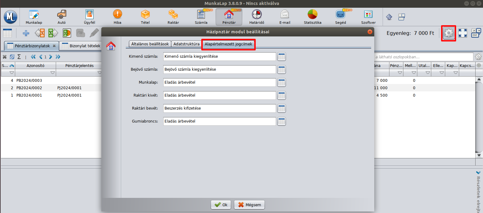 Lehetőség van a szoftver más moduljaiban készített készpénzes számlákhoz pénztári jogcímeket rendelni, így a szoftver automatikusan a kiválasztott jogcímet rendeli a pénztárbizonylathoz.