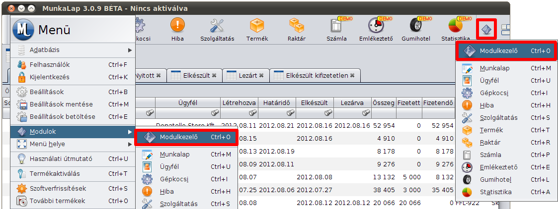 - Fő menüsáv ► Modulok ikon ► Modulkezelő
