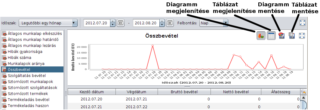 - Diagramm megjelenítése a kiválasztott időszakról.
