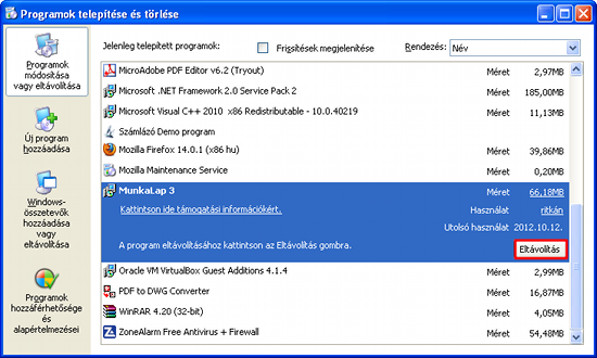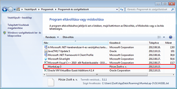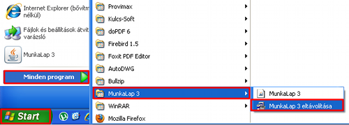 1. Start menü ► Minden program ► MunkaLap 3 ► MunkaLap 3 eltávolítása